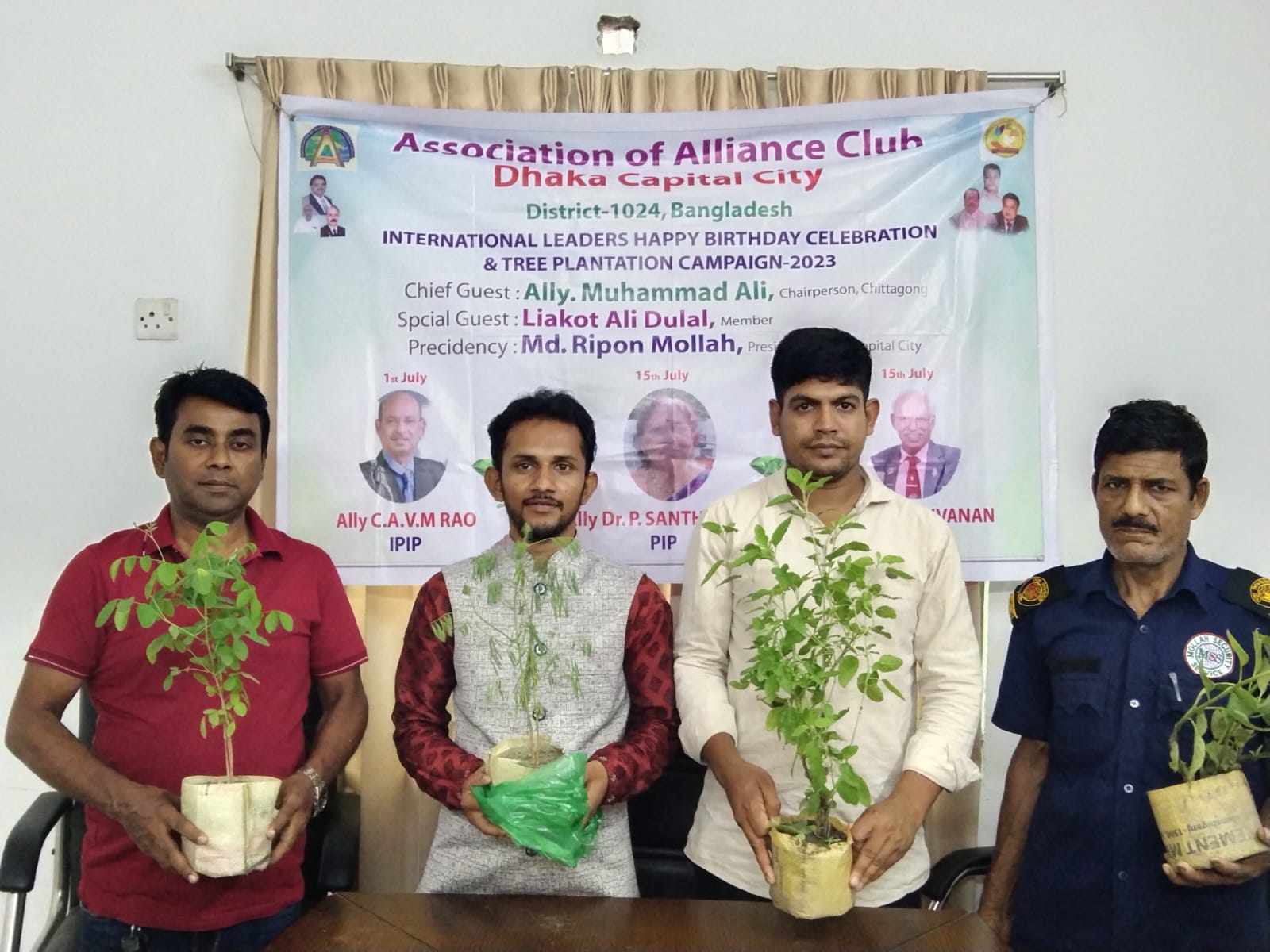 ‘গাছ লাগিয়ে যত্ন করি, সুস্থ প্রজন্মের দেশ গড়ি’। এই প্রতিপাদ্যকে সামনে রেখে অ্যাসোসিয়েশন অফ অ্যালায়েন্স ক্লাব ঢাকা ক্যাপিটাল সিটি ডিস্ট্রিক ১০২৪ এর বৃক্ষরোপণ অভিযান এবং ইন্টারন্যাশনাল লিডার এলি. বি এম রাও, এলি. ডক্টর পি সানতাম্মা, এলি. মাহতাবিনান এর জন্মবার্ষিকী উদযাপন করা হয়।