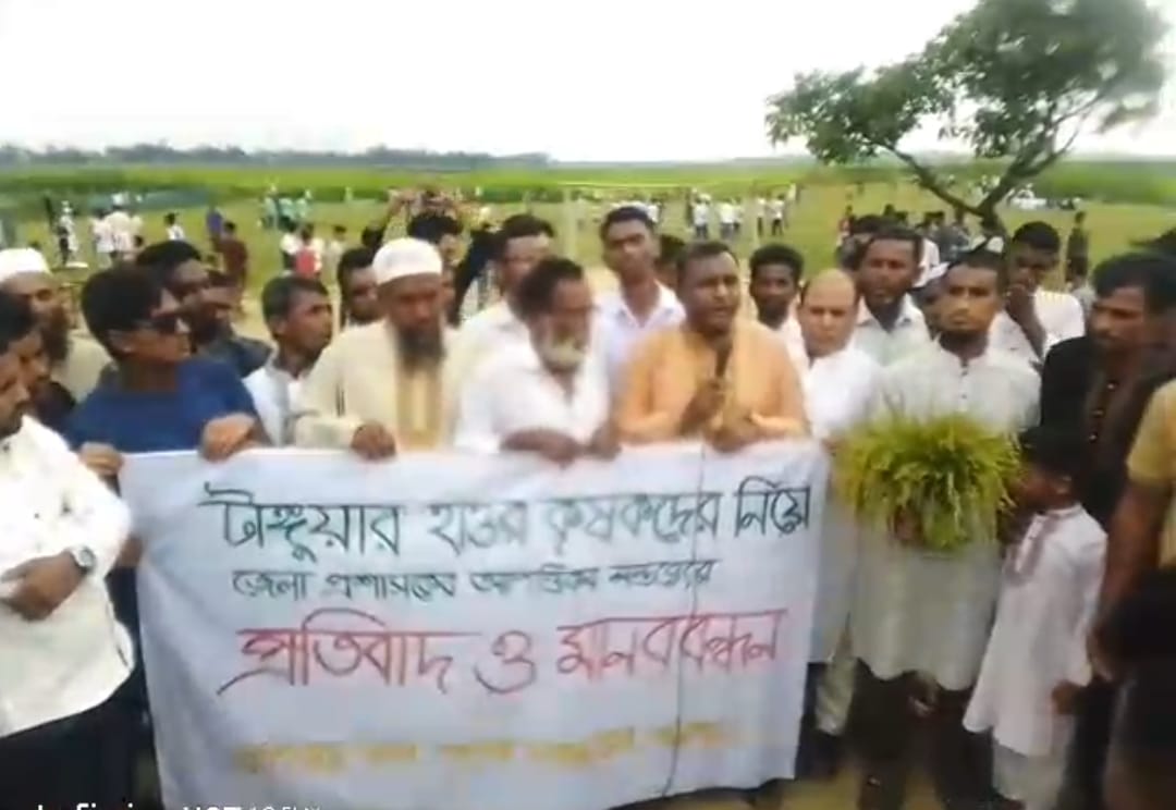 আপত্তিকর বক্তব্যের প্রতিবাদে ডিসি ডেভিল ইলিয়াসের অপসারণের দাবীতে টাংগুয়ার হাওরপাড়ে মানববন্ধন
