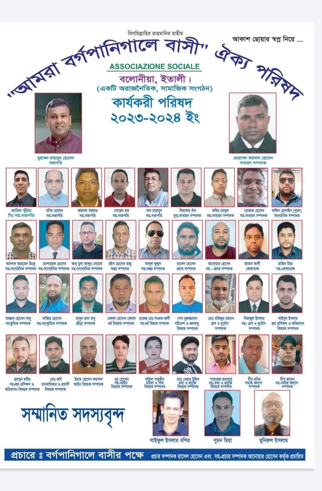 সকল জল্পনা কল্পনা আর নানা নাটকিয়তার অবসান ঘটিয়ে ইতালিস্থ বলোনিয়া সকলের উপস্থিতিতে এক আনুষ্ঠানিক মাধ্যমে গঠিত হলো "আমরা বর্গপানিগালে বাসী ঐক্য পরিষদ" ২০২৩/২০২৪ পূর্ণাঙ্গ কমিটির।