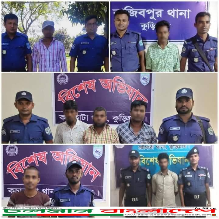 পুলিশ জানায়, জেলার বিভিন্ন থানায় বিশেষ অভিযান পরিচালনা করে জিআর ওয়ারেন্ট মূলে নাগেশ্বরী ১জন, চিলমারী ২জন, রৌমারী ১জন, ঢুষমারা ১জন, সিআর ওয়ারেন্ট মূলে কুড়িগ্রাম সদরে ১জন, রাজারহাট ১জন, রাজিবপুরে ১জন, সাজা জিআর ওয়ারেন্ট মূলে সদরে ২ জন, ফুলবাড়ীতে ১জন, নিয়মিত মামলায় ৫ জন ও পূর্বের মামলায় ১ জন সহ মোট ২৬ জন গ্রেফতার করা হয়।
