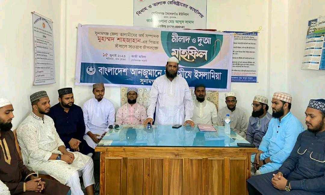 বাংলাদেশ আনজুমানে তালামীযে ইসলামিয়া সুনামগঞ্জ জেলার অর্থ সম্পাদক মুহাম্মদ শাহজাহান এর পিতা বিশিষ্ট সমাজসেবক জনাব রমজান আলী'র ঈসালে সাওয়াব উপলক্ষে মীলাদ ও দু'আ মাহফিল ১৫ জুলাই, শনিবার, বাদ জোহর, গোবিন্দগঞ্জস্থ কাজী অফিসে অনুষ্ঠিত হয়েছে।