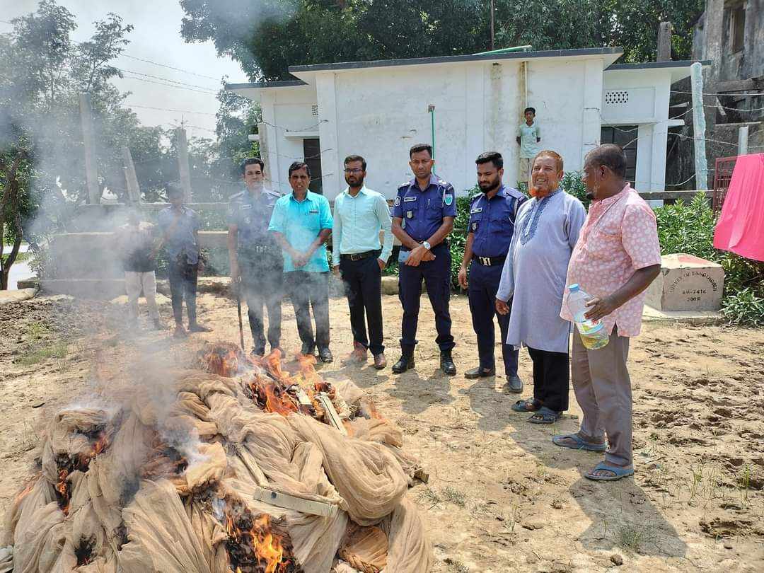 দুইদিন বৃষ্টির থাকার কারণে জাল শুকিয়ে রবিবার দুপুর ১ টার দিকে উপজেলা শেখ রাসেল মিনি স্টেডিয়ামে আগুনে পুড়িয়ে ছাই করা হয়।