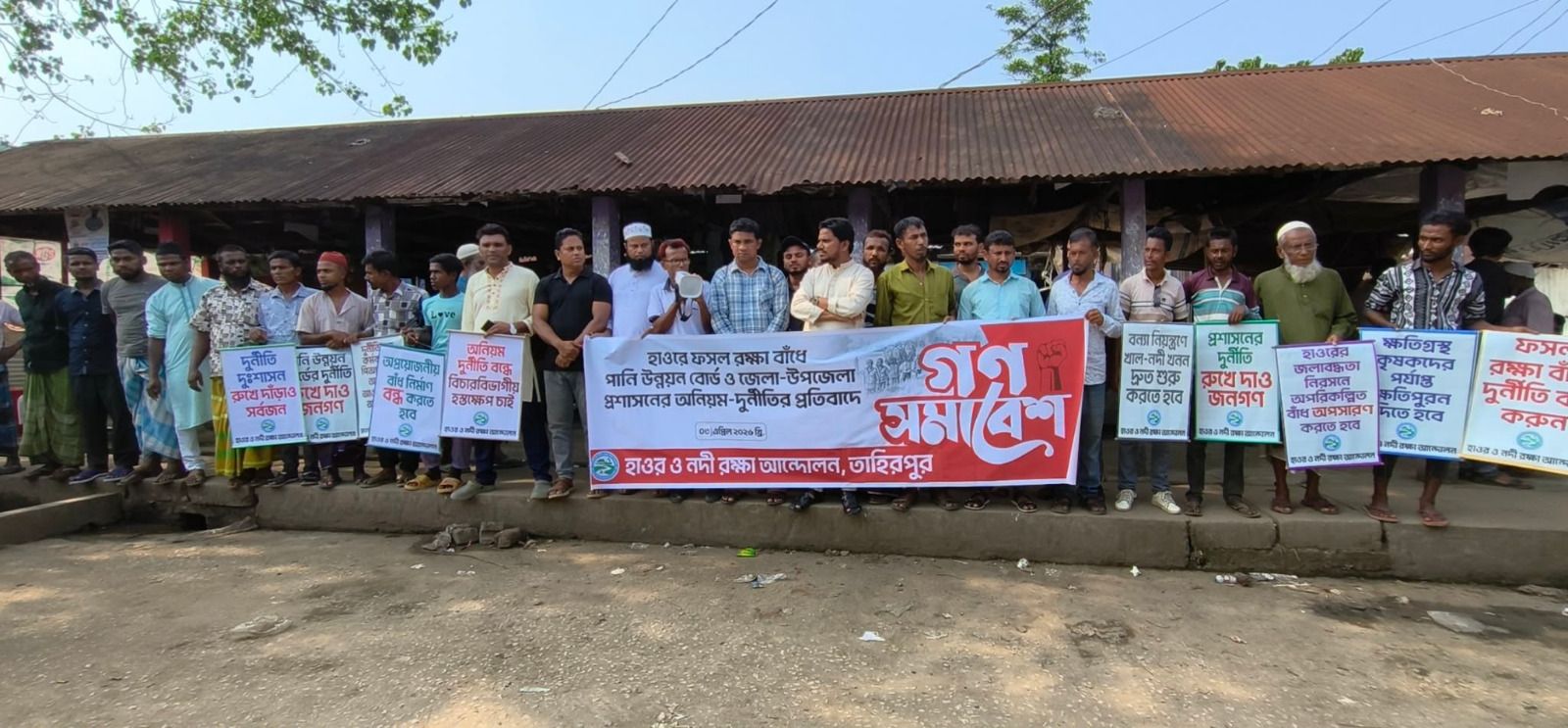 তাহিরপুরে হাওর রক্ষা বাঁধে পাউবো ও প্রশাসনের অনিয়ম-দুর্নীতির প্রতিবাদে গণ-সমাবেশ