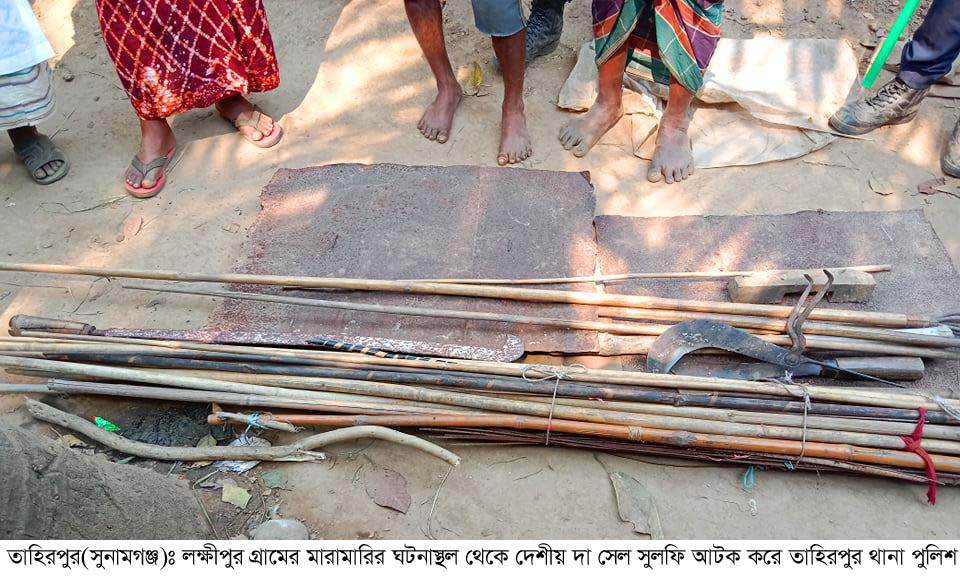 তাহিরপুর থানার ওসি সয়দ ইফতখার হাসন বলন, বুধবার দুপুর গ্রফতারকৃত ৪ জনক সুনামগঞ্জ জল হাজত পাঠানা হয়ছ। ঘটনাস্লর আশপাশ থক দশীয় সল, সুলফি উদ্ধার করছ পুলিশ।