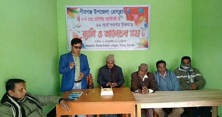পীরগঞ্জে উপজেলা প্রেসক্লাবের ১০ তম প্রতিষ্ঠা বার্ষিকী ও ১১ বর্ষে পদার্পন উপলক্ষে র‍্যালী ও আলোচনা সভা অনুষ্ঠিত