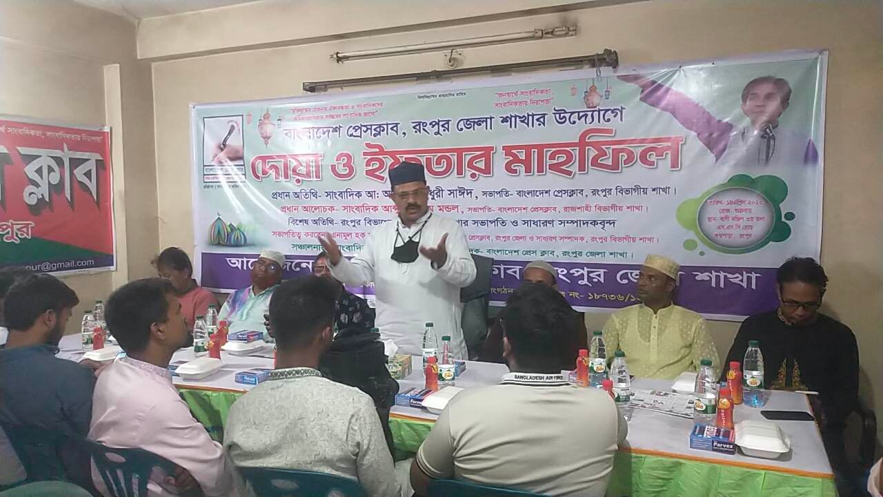 আজ ২২ রমযান (১৪ এপ্রিল ) বাংলাদেশ প্রেসক্লাব রংপুর জেলা শাখার অস্থায়ী কার্যলায়ে বিকেলে আলোচনা, দোয়া ও ইফতার মাহফিল অনুষ্ঠিত হয়েছে।