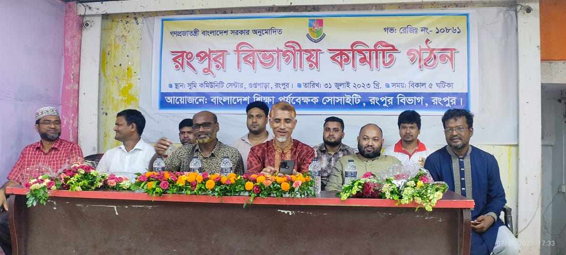 উক্ত কমিটি গঠন ও আলোচনা সভায় রংপুর সরকারী টিচার্স ট্রেনিং কলেজের সাবেক অধ্যক্ষ, বীর মুক্তিযোদ্ধা প্রফেসর ড: গোলাম মোস্তফা কে সভাপতি, মেট্রো নার্সিং কলেজের ব্যবস্থাপনা পরিচালক এএসএম ইমরুল সাহেদ কে সাধারণ সম্পাদক করে ২৬ সদস্য বিশিষ্ট ৩ বছর মেয়াদি বাংলাদেশ শিক্ষা পর্যবেক্ষক সোসাইটি'র রংপুর বিভাগীয় শাখা কমিটির নাম ঘোষণা করেন সংগঠনের প্রতিষ্ঠাতা চেয়ারম্যান অধ্যক্ষ শরিফুল ইসলাম।