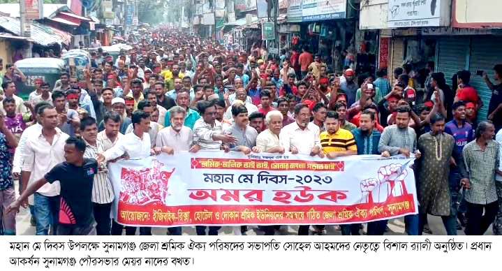 মহান মে দিবস উপলক্ষে সুনামগঞ্জ জেলা শ্রমিক ঐক্য পরিষদের উদ্যোগে র‌্যালী ও আলেচনা সভা