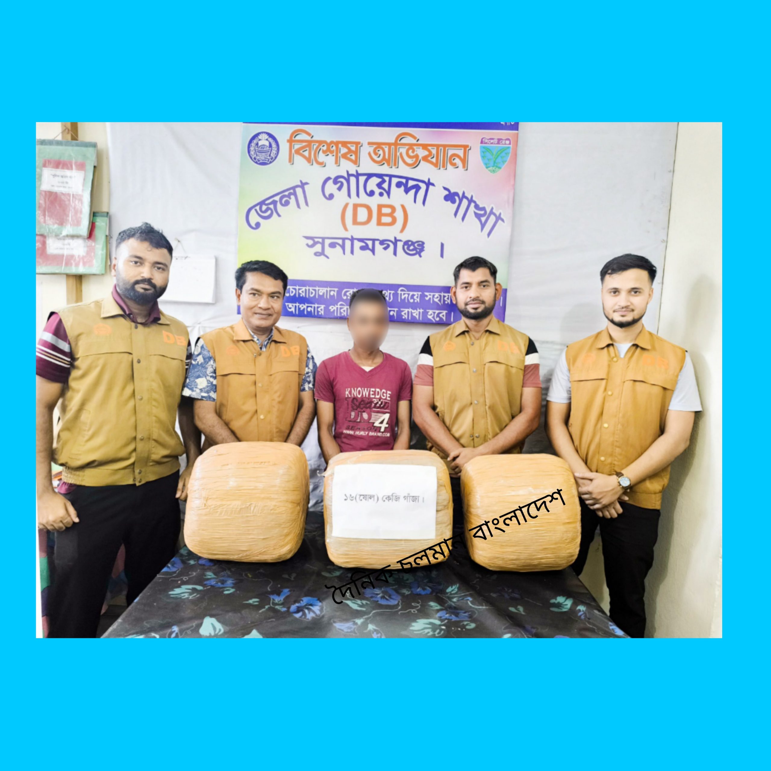 চলমান ডেক্স:সুনামগঞ্জ জেলা গোয়েন্দা (ডিবি) পুলিশের অভিযানে ১৬ কেজি গাঁজাসহ একজন মাদক ব্যবসায়ীকে গ্রেফতার করা হয়েছে। গ্রেফতারকৃত ব্যক্তির নাম রাজ্জাক মিয়া (২৬)তিনি দিরাই থানার নতুন কর্ণগাঁও গ্রামের বাসিন্দা।