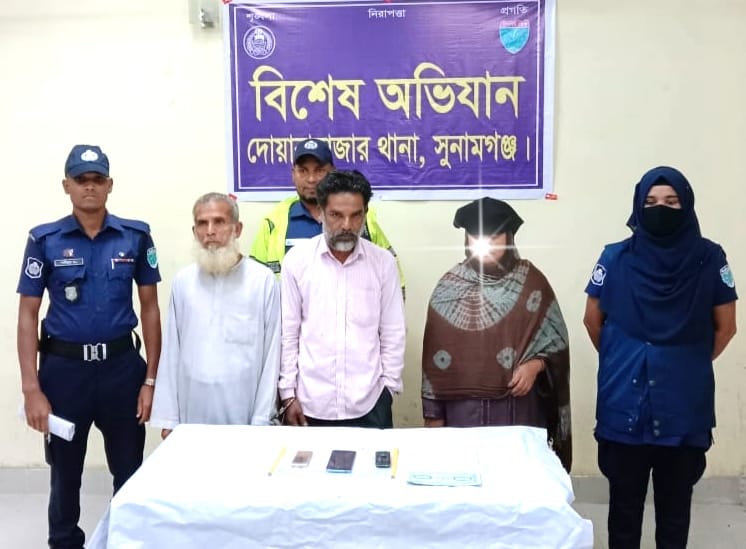 সুনামগঞ্জ জেলার দোয়ারাবাজার থানা পুলিশের অভিযানে মানবপাচার চক্রের ০৩ সদস্য আটক