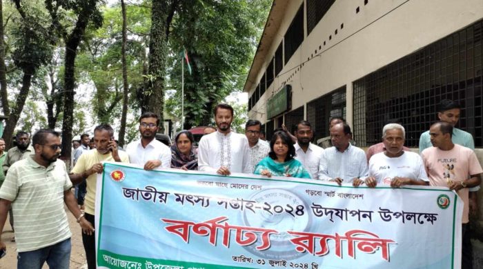 স্টাফ রিপোর্টার::ভরবো মাছে মোদের দেশ, গড়বো স্মার্ট বাংলাদেশ’- এই প্রতিপাদ্য নিয়ে বুধবার(৩১ জুলাই) বেলা ১২ টার দিকে তাহিরপুরে জাতীয় মৎস্য সপ্তাহ-২০২৪উপলক্ষে র‌্যালি, পোনা মাছ অবমুক্তকরণ  অনুষ্ঠিত হয়েছে। র‌্যালিটি উপজেলা পরিষদ চত্বর