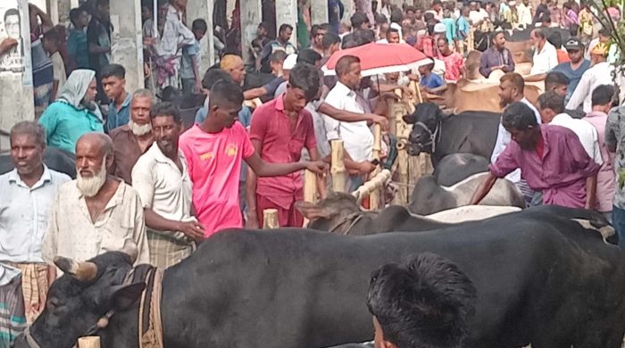 মোঃ শফিয়ার রহমান খুলনা পাইকগাছা প্রতিনিধ:ঈদুল আজহাকে সামনে রেখে খুলনার পাইকগাছার ঐতিহ্যবাহী গদাইপুর বাজারে জমে উঠেছে পশুর হাট। বিগত বছরের পশু হাটের সময় বৃষ্টির দেখা মিলেছে। এ বছর বৃষ্টি না