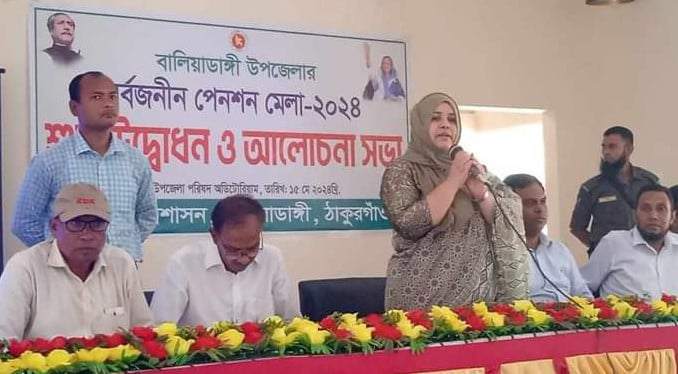 গীতি গমন চন্দ্র রায় গীতি।।স্টাফ রিপোর্টার:ঠাকুরগাঁওয়ের বালিয়াডাঙ্গীতেবুধবার (১৫ মে) উপজেলা পরিষদ হলরুমে উপজেলা প্রশাসনের আয়োজনে অনুষ্ঠিত সর্বজনীন পেনশন স্কিম মেলা উদ্বোধনী করা হয়।সুখে ভরবে আগামী দিন,পেনশন এখন সর্বজনীন এই স্লোগানে