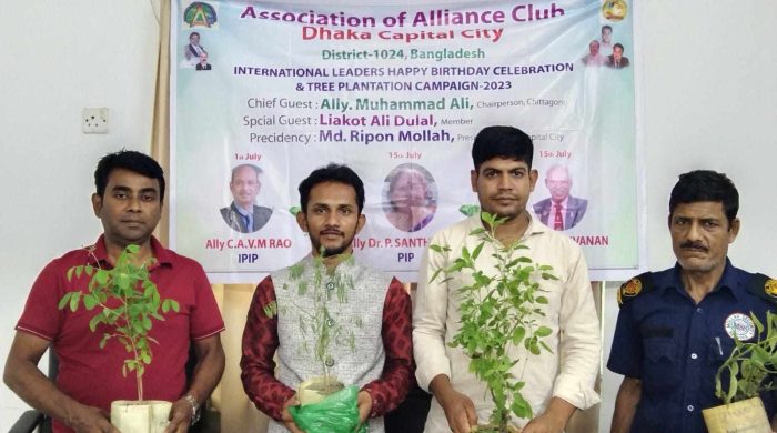 চলমান ডেস্ক : ‘গাছ লাগিয়ে যত্ন করি, সুস্থ প্রজন্মের দেশ গড়ি’। এই প্রতিপাদ্যকে সামনে রেখে অ্যাসোসিয়েশন অফ অ্যালায়েন্স ক্লাব ঢাকা ক্যাপিটাল সিটি ডিস্ট্রিক ১০২৪ এর বৃক্ষরোপণ অভিযান এবং ইন্টারন্যাশনাল লিডার
