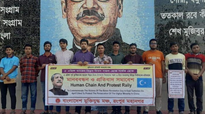 স্টাফ রিপোর্টার: পূর্ব তুর্কিস্তানের ব্যারেন বিপ্লব দিবস উপলক্ষে নিহতদের স্মরণ ও চীনে সংখ্যালঘু উইঘুর নির্যাতনের প্রতিবাদে আজ ৫ এপ্রিল বুধবার দুপুরে রংপুর প্রেসক্লাবের সামনে এবং বিকাল ৩টায় রংপুরে অবস্থিত বঙ্গবন্ধু