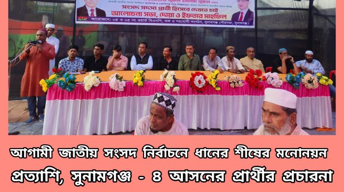 সুনামগঞ্জ প্রতিনিধি:জাতীয় দৈনিক বাংলাদেশ সমাচার পত্রিকার নিজস্ব প্রতিবেদক ও সিলেট, ময়মনসিংহ বিভাগের পরিচালক গীতিকার, কবি, সমাজ সেবক মোঃ বিল্লাল হাওলাদার সুনামগঞ্জ আগমন উপলক্ষে সংবর্ধনা ও সম্মাননা প্রদান উপলক্ষে সংবর্ধনা সভা