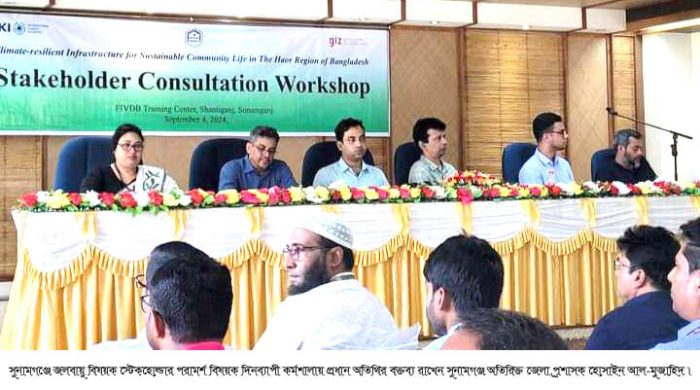 সুনামগঞ্জ প্রতিনিধিঃসুনামগঞ্জে জলবায়ু-স্থিতিস্থাপক অবকাঠামো বিষয়ক স্টেকহোল্ডার পরামর্শ বিষয়ক দিনব্যাপী কর্মশালা অনুষ্ঠিত হয়েছে। বুধবার সকাল থেকে জার্মান সরকারের অর্থায়নে, পল্লী কর্ম-সহায়ক ফাউন্ডেশন কর্তৃক বাস্তবায়নাধীন ক্লাইম এক্রচেইজ্ঞ এর আয়োজনে, বাংলাদেশের হাওর অ