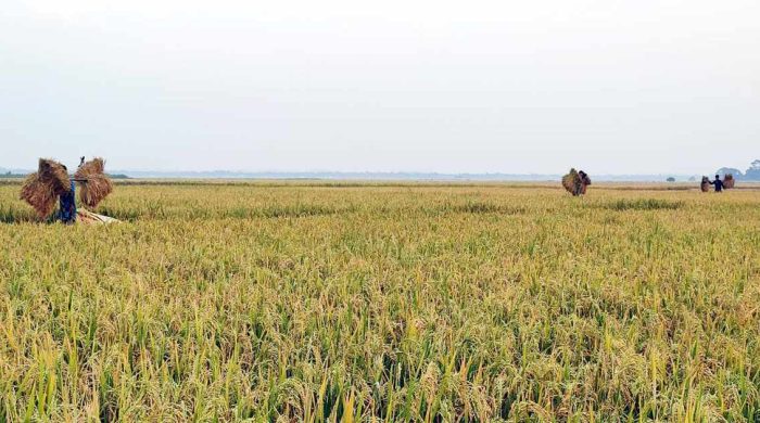 মোঃ নাজমুল ইসলাম,নেত্রকোণা প্রতিনিধিঃবোরো মৌসুমে চালের সবচেয়ে বড় জোগান আসে হাওরাঞ্চল থেকে। অনুকূল আবহাওয়ার কারণে এবার ধানের বাম্পার ফলন হয়েছে ভাটির এ অঞ্চলে। চলমান তীব্র তাপপ্রবাহের মধ্যেই পাকা ধান কেটে