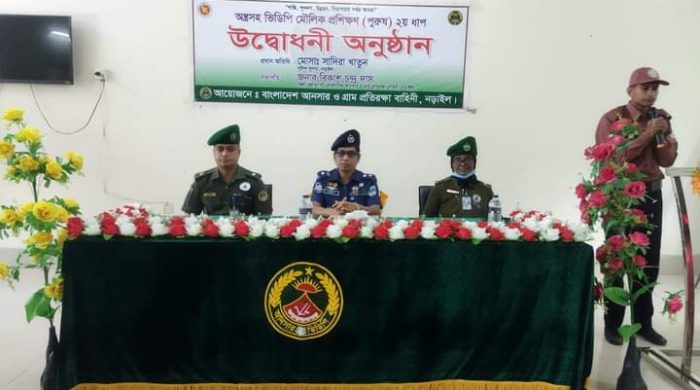খন্দকার ছদরুজ্জামান, নড়াইল জেলা প্রতিনিধি: নড়াইল জেলা আনসার ও ভিডিপি কার্যালয়ে ৪০ জন ভিডিপি(পুরুষ) সদস্যদের ২১ দিনব্যাপী অস্ত্রসহ মৌলিক প্রশিক্ষণ(২য় ধাপ) এর উদ্বোধনী অনুষ্ঠান অনুষ্ঠিত হয়েছে। বাংলাদেশ আনসার ও