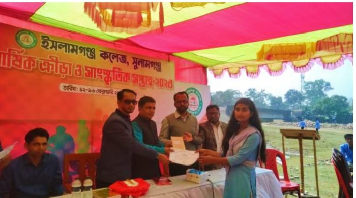 মোঃ আরাফাত আজিজ সজিব: ইসলামগঞ্জ ডিগ্রি কলেজে বার্ষিক ক্রীড়া প্রতিযোগিতা, সনদ ও পুরস্কার বিতরণ অনুষ্ঠিত হয়েছে। বৃহ¯পতিবার সকাল ১১টায় ভারপ্রাপ্ত অধ্যক্ষ মো. জামাল হোসেনের সভাপতিত্বে ও প্রভাষক সালেহ আহমদের
