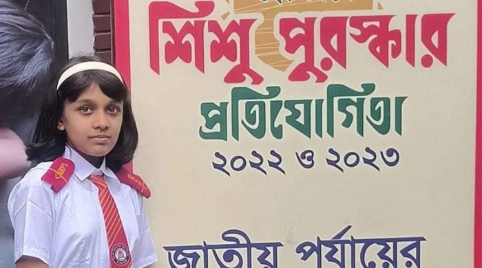 মোঃ আরাফাত আজিজ সজিব, সুনামগঞ্জ প্রতিনিধি: জাতীয় শিশু পুরস্কার ২০২২ এ সিলেটের সরকারি কিন্ডারগার্টেন প্রাইমারি স্কুলের পঞ্চম শ্রেণির শিক্ষার্থী তাসনিম মেহজাবিন চৌধুরী ‘ক’ গ্রুপে প্রথম হয়েছে। মহিলা ও শিশু