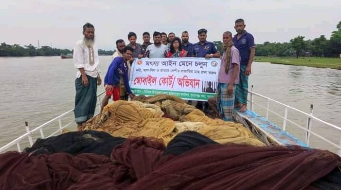 মোশারফ হোসেন লিটন সুনামগঞ্জ প্রতিনিধি: হাওর অঞ্চলে দেশীয় প্রজাতির মাছের উৎপাদন বৃদ্ধির লক্ষ্যে,মা ও পোনামাছ নিধন রোধে,সুনামগঞ্জ সদর উপজেলার সুরমা নদীর বিভিন্ন স্থানে ভ্রাম্যমাণ আদালতের অভিযান চালিয়ে ৮লক্ষ টাকার
